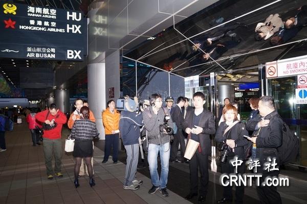 清晨時(shí)分,機(jī)場(chǎng)外就以有大批媒體守候,等待王郁琦的道來(lái)。(中評(píng)社 黃文杰攝)