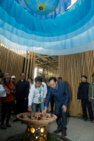 朱立倫參訪云林農(nóng)博,與副縣長(zhǎng)施克灑下“希望種子”。(臺(tái)媒圖)