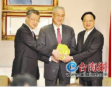 2013年2月18日江宜樺(右一)從陳沖(左一)手中接過印信。