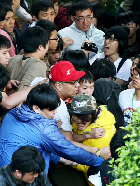 據(jù)報(bào)道,現(xiàn)場(chǎng)學(xué)生指揮林飛帆、陳為廷等人見(jiàn)狀急忙出面試圖緩和情緒。不過(guò)有不少學(xué)生情緒激動(dòng),抨擊林、陳等人是“造神”,大喊“難道這時(shí)還要怕受傷”、“決策不透明”、“警察撤退”、“記者后退”、“罷免馬英九”等口號(hào)。