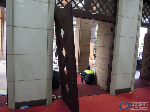中國臺(tái)灣網(wǎng)3月24日消息 據(jù)臺(tái)灣媒體報(bào)道,數(shù)千名反服貿(mào)學(xué)生包圍臺(tái)當(dāng)局“行政院”,“行政院秘書長”李四川24日上午7點(diǎn)左右檢視建筑物遭破壞的狀況。發(fā)現(xiàn)“院內(nèi)”遭大肆破壞,門垮、窗破、桌移、柜毀。(中國臺(tái)灣網(wǎng) 朱煉)