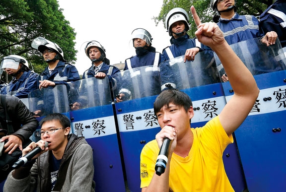 反服貿(mào)學(xué)生代表嗆:監(jiān)督條例若過(guò)政院版將進(jìn)擊“總統(tǒng)府”。(臺(tái)媒圖)