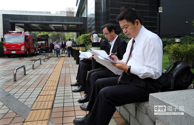 “立委”孔文吉等人忙走到戶(hù)外。(圖片來(lái)源:臺(tái)灣中時(shí)電子報(bào))