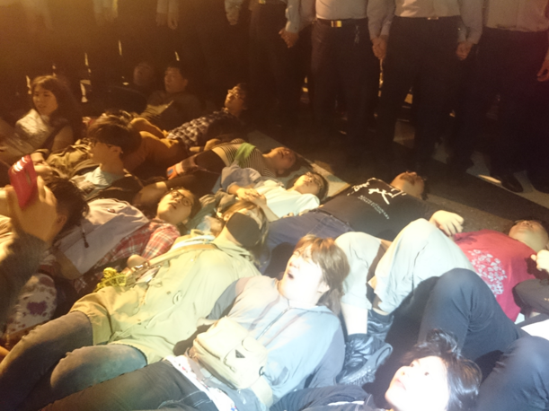 抗議青年直接躺在馬英九辦公室前。(臺媒圖)