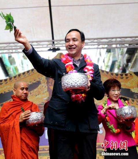 新北市長(zhǎng)、國(guó)民黨主席朱立倫(中)資料圖 中新社發(fā) 陳小愿 攝