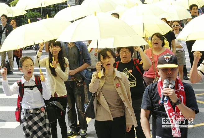 臺灣勞團(tuán)高喊“給我40,其余免談”。(中時(shí)電子報(bào)圖 陳振堂攝)