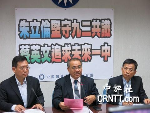 據(jù)香港中評社5月7日報(bào)道,中國國民黨“立法院”黨團(tuán)書記長廖國棟、國民黨政策會(huì)執(zhí)行長賴士葆與“立委”吳育升7日上午舉行記者會(huì),針對民進(jìn)黨昨天批抨國民黨主席朱立倫在“朱習(xí)會(huì)”上提到“兩岸同屬一中”,加大火力抨擊參選2016的民進(jìn)黨主席蔡英文。