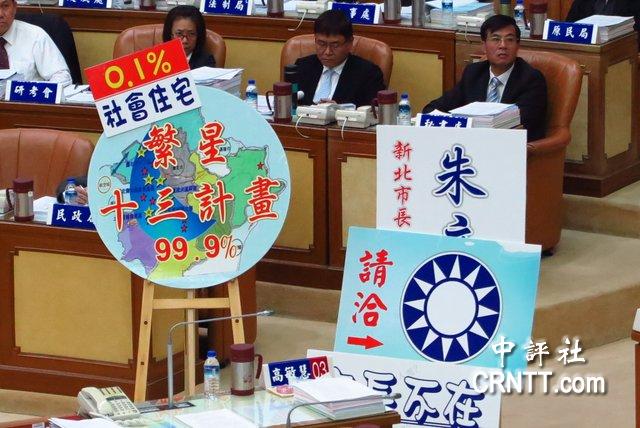 民進(jìn)黨舉牌杯葛朱立倫。(中評(píng)社彭媁琳攝)