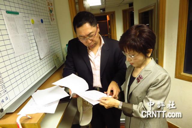 據(jù)中評社報道 “立法院”副院長洪秀柱10日上午到飛碟電臺接受唐湘龍專訪,節(jié)目結(jié)束后,洪秀柱拿出兩份講稿,請?zhí)葡纨、陳鳳馨等資深名嘴,給予更專業(yè)的意見。