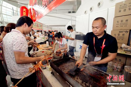 資料圖:5月18日,“第十七屆海峽兩岸經(jīng)貿(mào)交易會(huì)臺(tái)灣美食小吃展”在福州海峽國(guó)際會(huì)展中心舉行。士林夜市、花園夜市等臺(tái)灣4大夜市團(tuán)隊(duì)帶來(lái)臺(tái)灣各地小吃,為福州市民送上最地道的臺(tái)灣美食盛宴。李南軒 攝