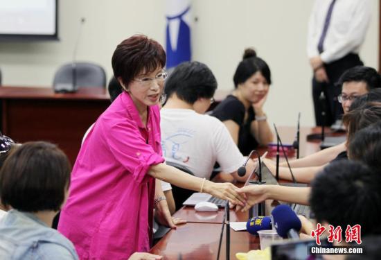圖為洪秀柱在民調(diào)揭曉后與媒體及支持者見面。黃少華 攝