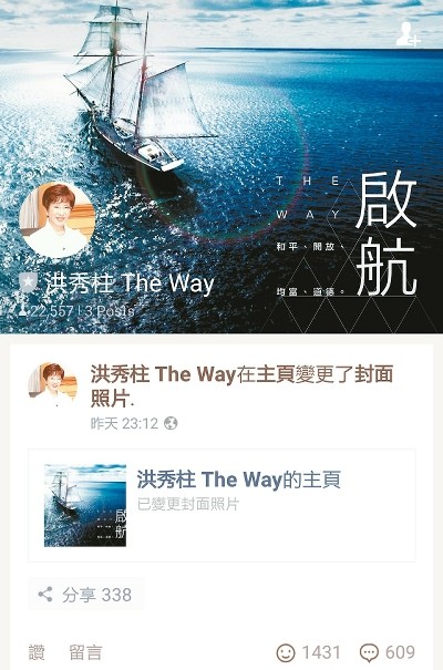 洪秀柱前晚十時成立官方LINE賬號,至昨晚十時,好友數已達24831人。(圖片取自臺媒)