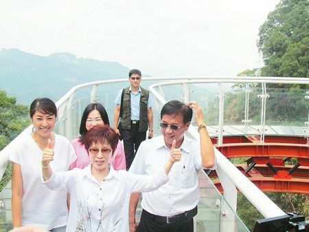 洪秀柱到中寮鄉(xiāng)的天空步道,她豎起大姆指說“贊”。來源:臺灣《聯(lián)合晚報》
