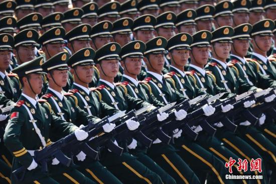 9月3日上午,紀念中國人民抗日戰(zhàn)爭暨世界反法西斯戰(zhàn)爭勝利70周年大會在北京隆重舉行。圖為三軍儀仗隊。中新社記者 趙振清 攝