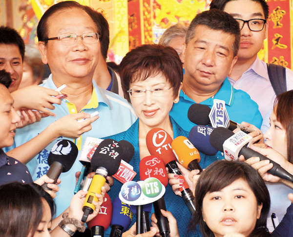 洪秀柱稱(chēng),國(guó)民黨親民黨有合作空間,不會(huì)放棄合作機(jī)會(huì)。圖為洪參加保福宮中元法會(huì)接受采訪。 資料圖片