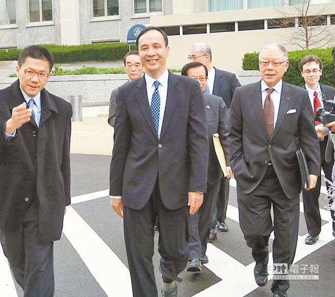 陪同朱立倫進入國務(wù)院的還有前臺灣方面“駐美代表”袁健生、前臺灣涉外部門負責人楊進添及前“國安會”副秘書長何思因,約1小時后,三人在東亞局官員陪同下,步出杜魯門大樓。