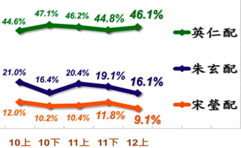 據(jù)臺灣“今日新聞網(wǎng)”12月14日報(bào)道,針對2016年臺灣地區(qū)領(lǐng)導(dǎo)人選舉,臺灣指標(biāo)民調(diào)14日公布最新調(diào)查結(jié)果,在國民黨及民進(jìn)黨候選人皆身陷負(fù)面風(fēng)波的爭議下,支持“英仁配”的仍有46.1%、16.1%支持“朱玄配”、9.1%支持“宋瑩配”,其余則是投廢票或不表態(tài)。與11月下半期的臺灣指標(biāo)民調(diào)結(jié)果相比,蔡英文支持度上升1.3%,朱立倫下跌3.0%,宋楚瑜也下跌2.7%。