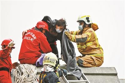 記者抵達(dá)時,看到救援人員剛剛救出一名民眾,他的精神狀態(tài)尚好,在擔(dān)架上還能和救援人員進(jìn)行交流。救援人員向其了解樓內(nèi)其他受困人員的情況和位置之后,將其送往醫(yī)療站接受進(jìn)一步治療。