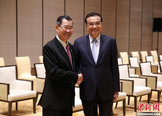 中共中央政治局常委、國務院總理李克強24日下午在海南博鰲會見前來出席博鰲亞洲論壇2016年年會的臺灣兩岸共同市場基金會榮譽董事長蕭萬長一行。