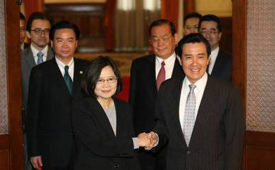 中國(guó)臺(tái)灣網(wǎng)3月30日訊 臺(tái)灣地區(qū)領(lǐng)導(dǎo)人馬英九、領(lǐng)導(dǎo)人當(dāng)選人蔡英文今(30日)在臺(tái)北賓館舉行“雙英會(huì)”,兩人簡(jiǎn)短公開(kāi)談話后閉門(mén)會(huì)談約70幾分鐘,會(huì)后握手超過(guò)30秒。據(jù)臺(tái)媒報(bào)道,馬英九和蔡英文針對(duì)年金、兩岸、臺(tái)灣涉外事務(wù)議題均有討論。