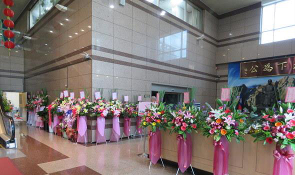 張雅屏被判有罪后,國民黨各地方縣市鎮(zhèn)民代表、市議員、中央委員紛紛送上慰問花籃,擺滿國民黨黨中央一樓各通道,表達力挺心意。(中評社圖)
