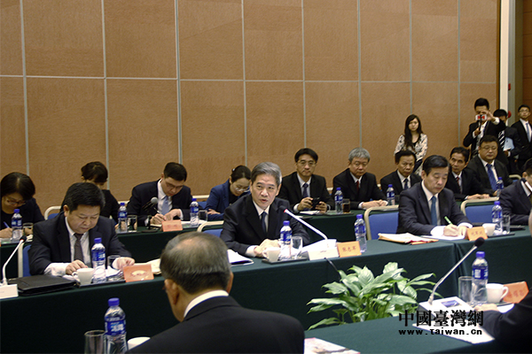 國(guó)務(wù)院臺(tái)辦主任張志軍18日在北京與來(lái)訪(fǎng)的臺(tái)灣縣市長(zhǎng)參訪(fǎng)團(tuán)舉行座談。(中國(guó)臺(tái)灣網(wǎng) 李天祺 攝)