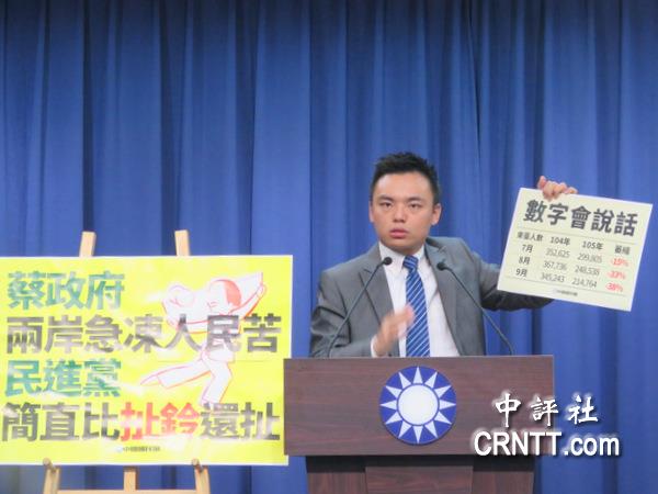 2015年9月陸客來臺(tái)34萬5243人,今年(2016)9月21萬4764人,負(fù)成長38%。