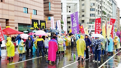 雖然陰雨不斷,現(xiàn)場(chǎng)仍有上百人身著雨衣長(zhǎng)時(shí)間集結(jié)。集會(huì)團(tuán)體紛紛表示,要“戳破”執(zhí)政黨的謊言騙術(shù),用行動(dòng)表達(dá)民眾對(duì)“經(jīng)濟(jì)要民主”及“階級(jí)要平等”的要求!扒锒贰毙袆(dòng)指揮方稱,民進(jìn)黨當(dāng)局才上任半年,在“全面執(zhí)政”的優(yōu)勢(shì)下,非但沒有檢討此前遺留的各種政策性問題,反而在幾個(gè)有機(jī)會(huì)翻轉(zhuǎn)結(jié)構(gòu)的重大政策上退守,甚至復(fù)制并強(qiáng)推各種向資本傾斜、短線操作、只為選舉考慮的法案。