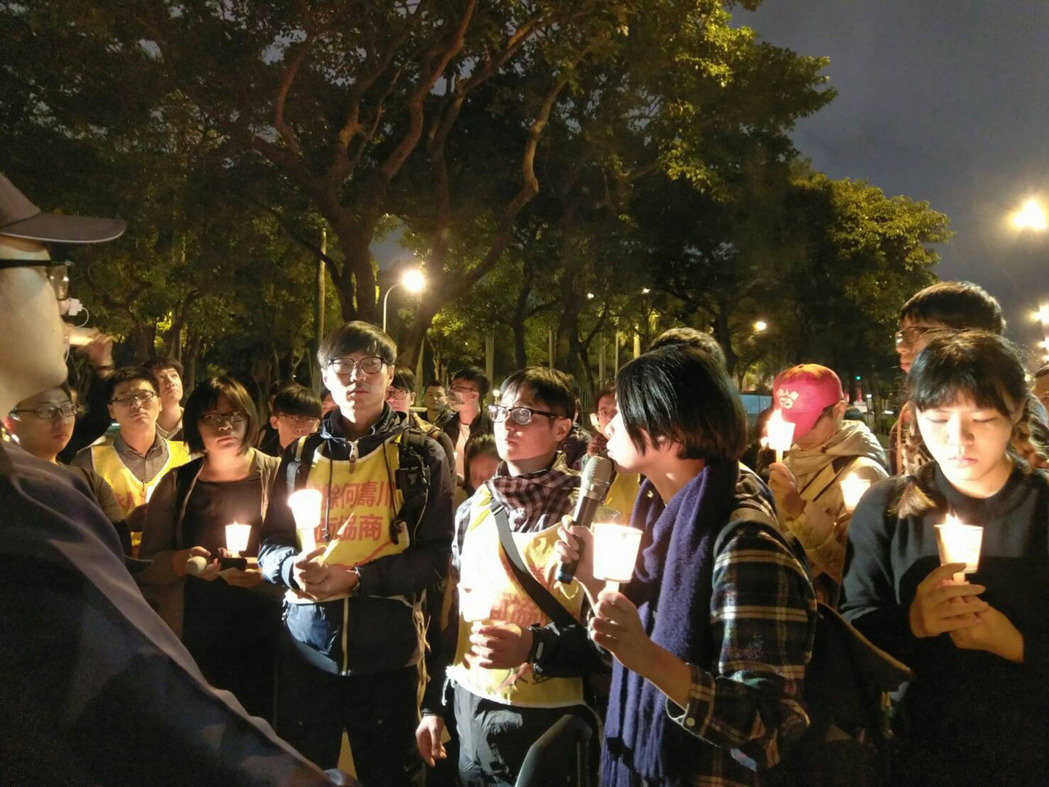 遭臺灣永豐余集團旗下元太科技無預警關(guān)廠的韓國Hydis工人,7日晚間在“財政部”前、靠近蔡英文官邸附近抗議,高呼口號“撤回關(guān)廠,撤回解雇,蔡英文出來面對”。(圖片來源:臺灣“中央社”)