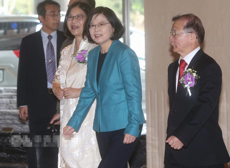 蔡英文10日前往臺(tái)北喜來登,參加民進(jìn)黨籍“立委”管碧玲(左2)女兒喜宴。(圖片來源:臺(tái)灣“中央社”)