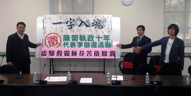 雄雄論壇召開記者會公布“一字入魂評花媽”的10個推薦字。(圖片來源:臺灣《中時電子報》)