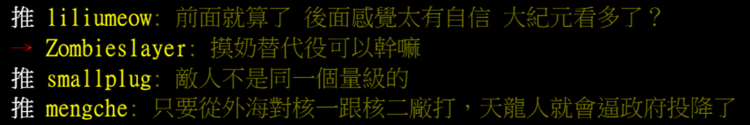 近日,臺灣社交媒體PTT(批踢踢實(shí)業(yè)坊)一篇名為“臺灣防御力超強(qiáng)!為什么國民自己不知道”的文章引起了島內(nèi)網(wǎng)民的關(guān)注,文章里充斥著對臺島防御戰(zhàn)的自大情緒,稱“除了美國,連俄國都打不下臺灣”、“就算沒有美日支援,中國要吞下臺灣的代價,也是大到他們吃不下去!倍麉s更多是在譏諷樓主:“鍵盤談兵”、“傻了才一味相信別人一定要為你做什么”。