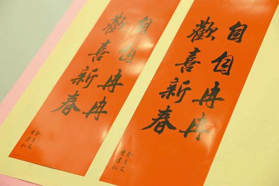 蔡英文書(shū)寫(xiě)的“自自冉冉”對(duì)聯(lián)