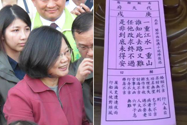 據(jù)報道,南鯤鯓代天府前年“國運簽”抽中“武則天坐天”詩簽,各方解讀意指蔡英文將登上臺灣地區(qū)領(lǐng)導(dǎo)人之位,引發(fā)熱議。28日上午南鯤鯓代天府卻抽中第54 號“國運簽”,簽詩“一重江水一重山,誰知此去路又難,任他改求終不過,是非到底未得安”,是少數(shù)的下下簽,再度引發(fā)討論。