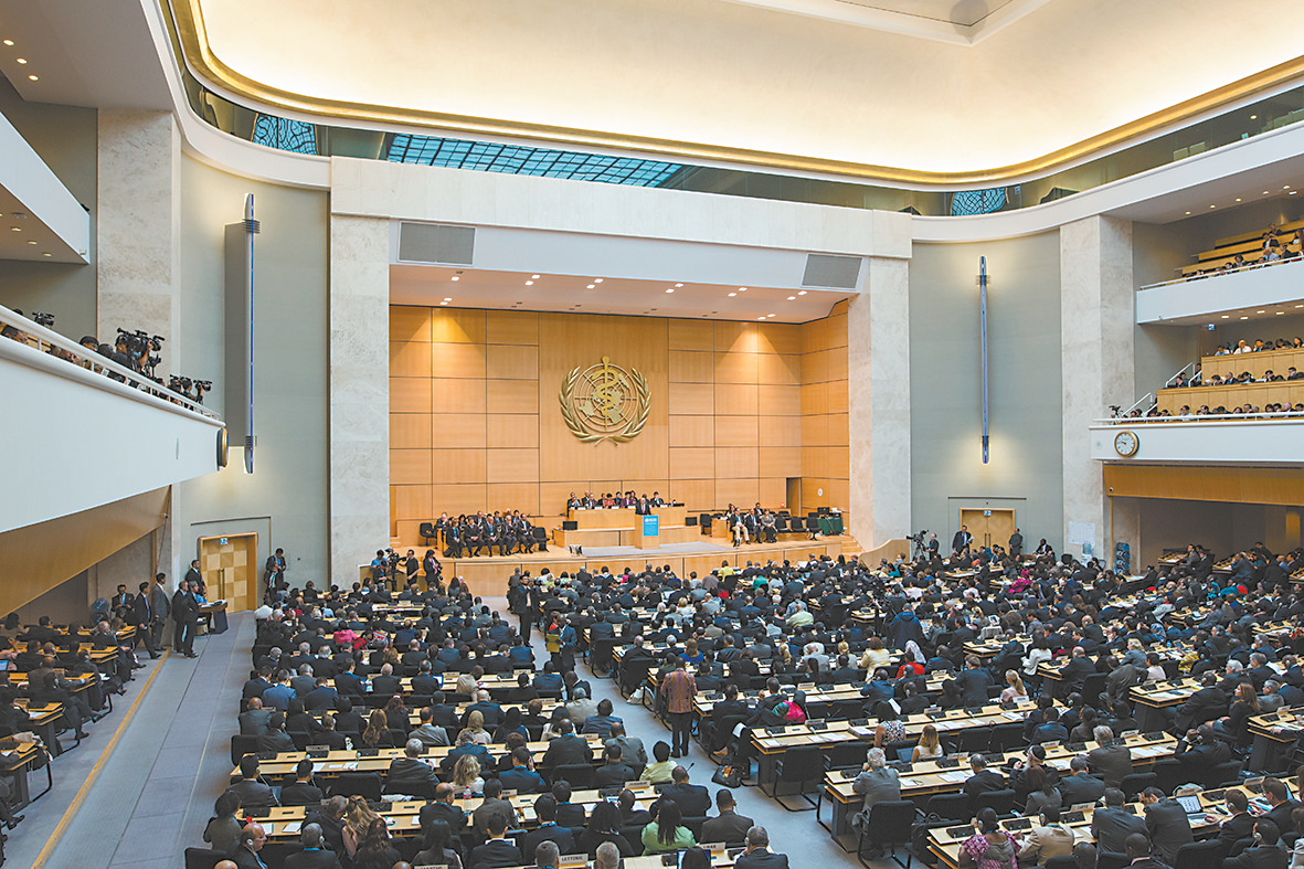 圖為去年世界衛(wèi)生大會在日內(nèi)瓦召開時(shí)的場景。