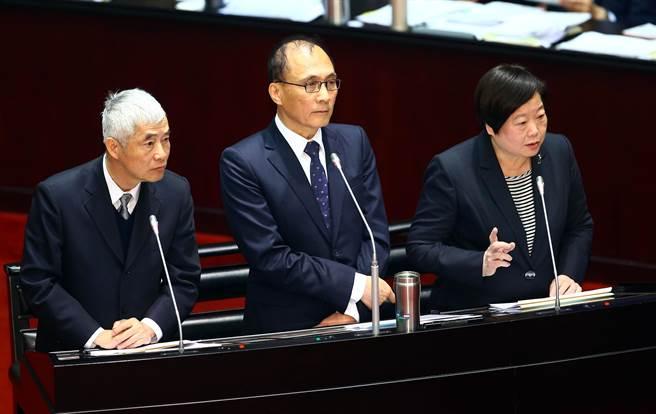 臺(tái)灣“行政院長(zhǎng)”林全帶領(lǐng)賀陳旦與林美珠回答質(zhì)詢