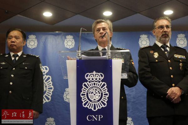 2016年12月,西班牙和大陸警方人員在記者會上介紹聯(lián)合搜捕行動的相關(guān)情況(埃菲社)