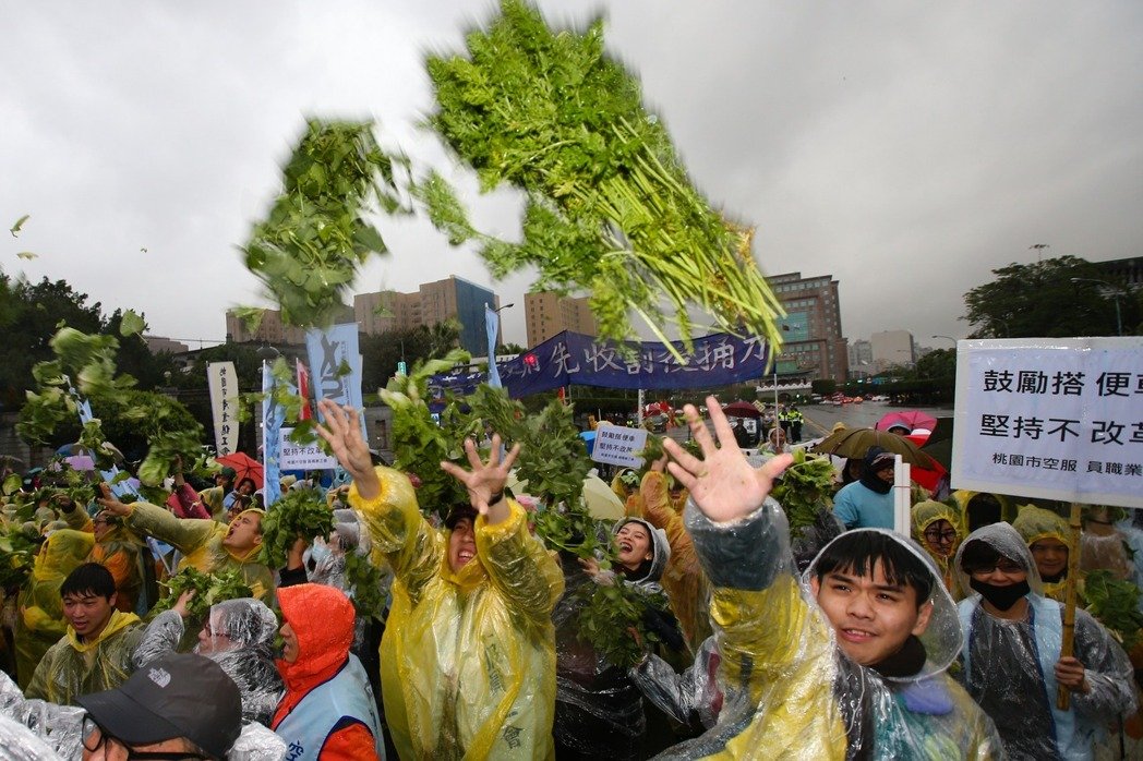2017年2月24日,臺灣抗議群眾向蔡英文辦公室前投擲一堆“爛菜”,表達對蔡當局的怒火。(圖片來源:臺“聯(lián)合報”)