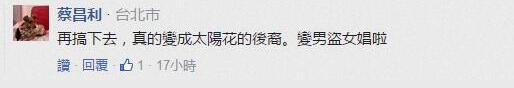 有網(wǎng)友表示,“臺灣至少有一般的人知道臺軍事什么德行,弄這種東西只是多新的笑柄”,還有網(wǎng)友表示,“與其花錢拍偶像劇,不如花錢去醫(yī)院治好腦袋”,“再這樣搞下去,真成太陽花的后裔了,變男盜女娼了”。