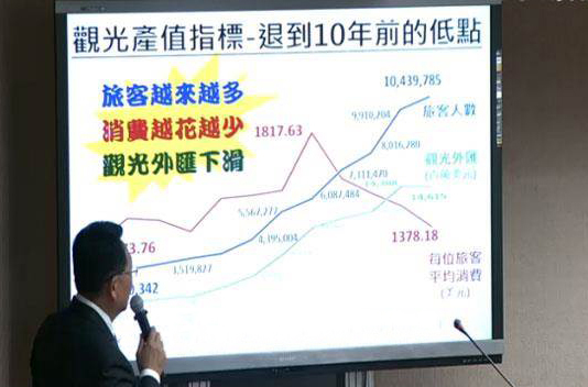“立委”陳歐珀指出,雖然來(lái)客旅客數(shù)有成長(zhǎng),但消費(fèi)額度卻退到10年前的觀光外匯水平。(臺(tái)媒圖)