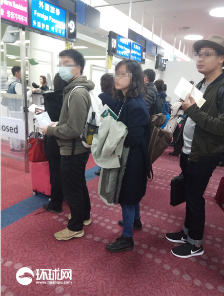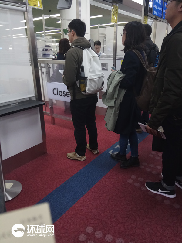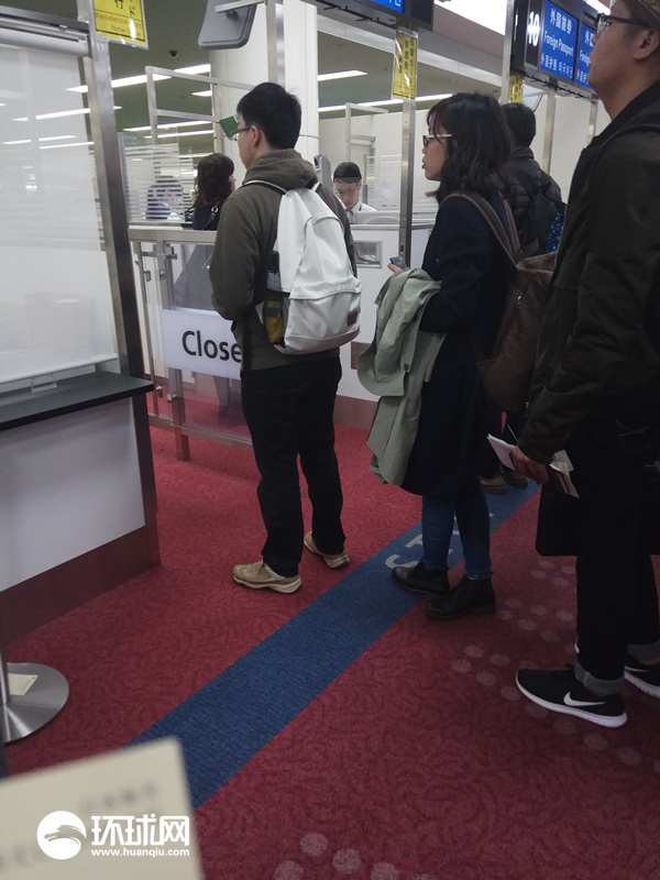 3月27日上午,環(huán)球網(wǎng)記者在日本東京羽田機(jī)場入關(guān)時,發(fā)現(xiàn)有位臺灣女子“護(hù)照”貼有“臺灣國”字樣貼紙,覆蓋了原本的“中華民國”。但入關(guān)時,該女子被日本入境官員準(zhǔn)許放行入關(guān),且該女子“護(hù)照”封面的“臺灣國”貼紙也沒有被撕去。圖中間女子為該臺灣女子。