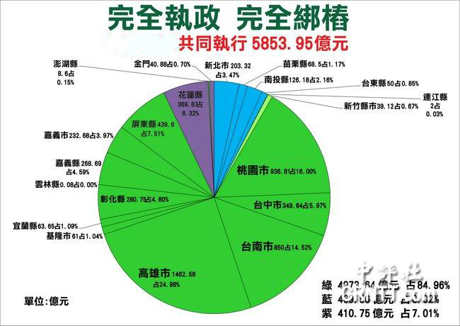 蔡當(dāng)局稱“前瞻基礎(chǔ)建設(shè)計劃”不分藍(lán)綠,對此,國民黨團(tuán)提出數(shù)據(jù)證明資源分配不均。(圖片來源:中評社)