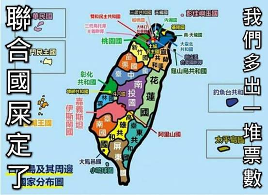 當(dāng)然,如果“獨(dú)立運(yùn)動”僅僅限于縣市,就太小兒科了,哪能體現(xiàn)“自由意志”呢?于是,“板橋獨(dú)立”、“斗六獨(dú)立”甚至“龜山島獨(dú)立”也都噴涌而出。。。