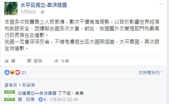 這是2013年《中國日報》上刊登的一篇腦洞極大的文章的開頭,一語成讖,2016年初,facebook上出現(xiàn)了“花蓮獨(dú)立—自決建國”的粉絲專頁,引發(fā)了臺灣各縣市的“獨(dú)立”高潮: