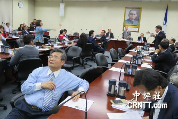 少了洪秀柱坐鎮(zhèn),5日的國民黨中常會大亂,國民黨中常委厲耿桂芳(左)與“挺吳派”中常委江碩平(右)爭論不休。(圖片來源:中評社)