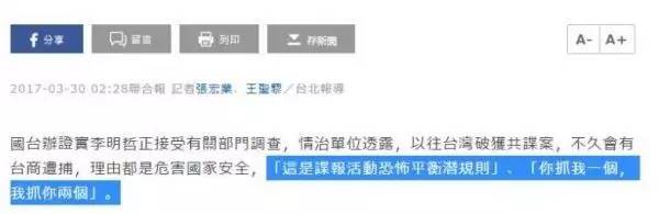 臺灣媒體對于此案的報道,已經(jīng)用了“諜報”之類的字眼。