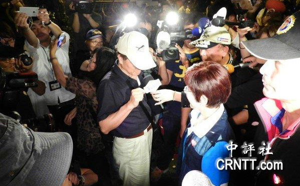 中國(guó)國(guó)民黨主席洪秀柱18日晚慰問(wèn)退休軍公教人員,這名退休軍人建議換掉王金平。(圖片來(lái)源:中評(píng)社)