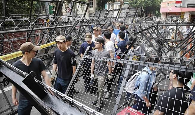 最后,警察將“立法院”出入口全部用拒馬封死。如果有人要出入,警察將嚴(yán)查證件后,人員才能從拒馬的隙縫出入。
