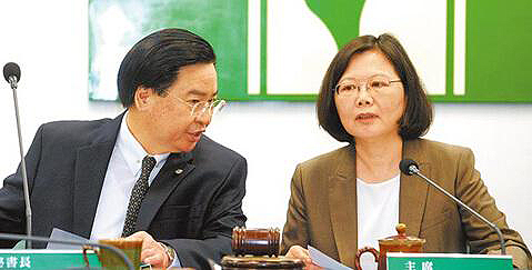 綠營(yíng)在野時(shí)期,吳釗燮(左)曾任民進(jìn)黨秘書(shū)長(zhǎng)兼民進(jìn)黨駐美代表(臺(tái)媒圖)