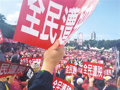 臺(tái)灣軍公教人員抗議民進(jìn)黨強(qiáng)推“年金改革”。 本報(bào)記者 吳亞明攝